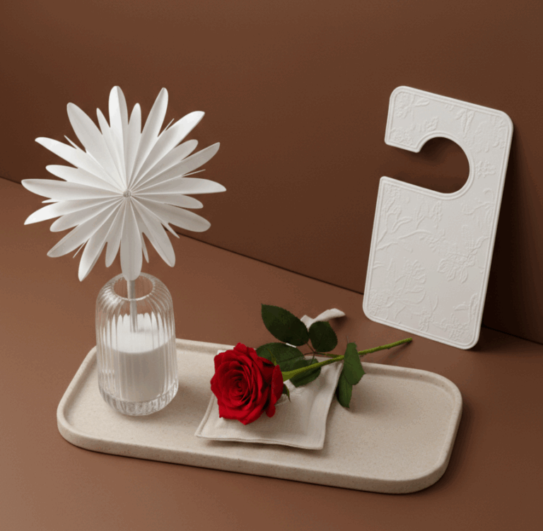 La collection Scenting propose une diversité de supports olfactifs : textiles brodés, ornements, origamis floraux ou encore accessoires personnalisables. Chaque création invite à explorer le parfum au-delà du flacon, en sollicitant plusieurs sens. Sentir, toucher, emporter : autant de gestes qui transforment un simple test en une expérience mémorable.